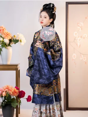 Originating from the Ming Dynasty, the Aoqun features a top (Ao) crafted from thicker fabrics, making it distinct from the lighter Ruqun. Since the Tang Dynasty, the Ao has gradually taken the place of the traditional shirt (Ru) in colder seasons, becoming a staple outer layer.