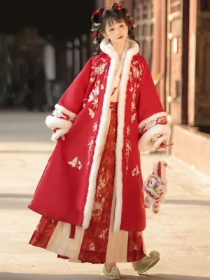 When temperatures dropped in ancient times, especially after autumn, women would commonly switch to wearing an Aoqun paired with a cozy cloak—this classic combo became a go-to winter outfit for warmth and elegance.